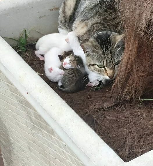 A few days had passed since I discovered Mila and her newborn kittens nestled in the quietest corner of my garden. What began as a tender surprise quickly became a profound emotional journey. Every morning, I would gently approach the plant pot that had become their sanctuary — a makeshift nursery filled with warmth, soft soil, and the purest form of maternal love.