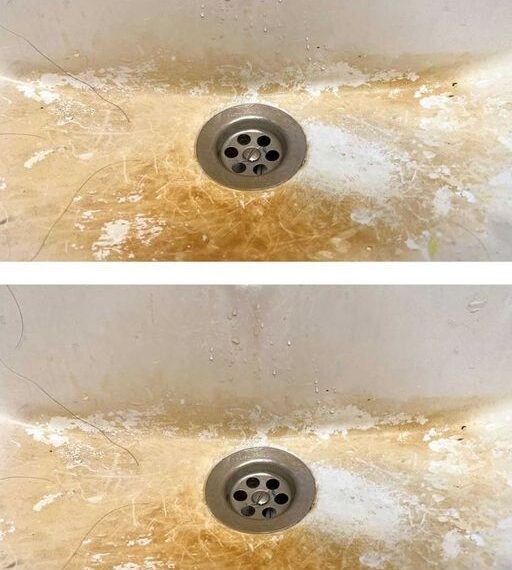Lime scale, also known as calcium deposits, forms when hard water evaporates and leaves behind mineral residues. It can appear as chalky white marks around your sink, faucets, or drains. Here’s how to tackle it: