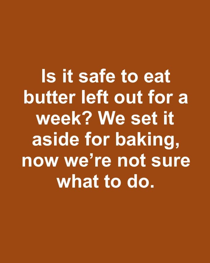 In general, food safety experts say butter may be fine at room temp for a couple of days, but a week is too long—especially if it wasn’t stored properly.