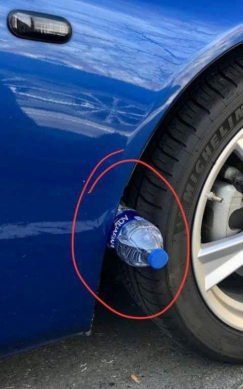 A thief places an empty plastic bottle just above your front passenger-side tire, where you’re unlikely to notice it immediately.