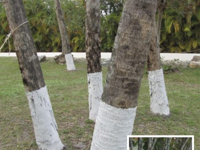 Trees with most of their trunk painted white, Photo Credit: Wikimedia
