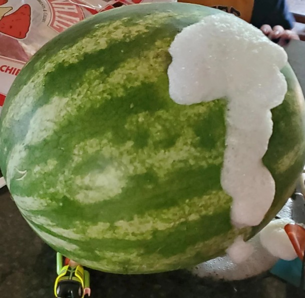 The caption said something like, “We left our watermelon from Costco on the counter and it started foaming. Google said it might explode. So we bagged it and put it in the outdoor bin. Next morning it blew up. Now there are maggots.”