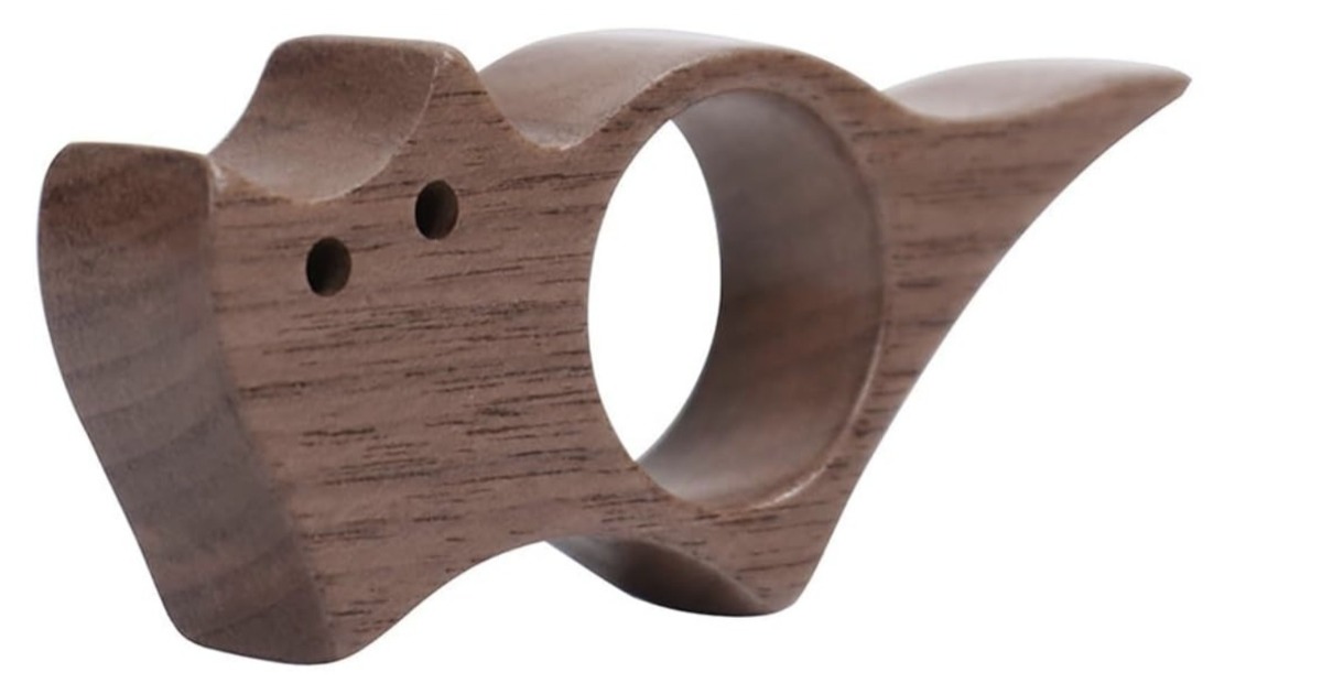 Ok, here’s how we will proceed I’m rifling through this book lover’s raffle basket — half expecting just a fancy mug and possibly a paperback I already own — and boom. There it is. This curious little object of wood, a thumb book holder. Kinda looked like a fox. Or a bat. In fairness, for a second I thought it was some sort of kind of rustic knuckle duster (not the vibe I was expecting from a book-themed basket, but hey).