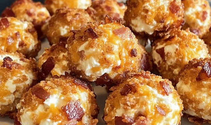 These delicious-looking snacks appear to be Bacon Cheddar Cream Cheese Balls — perfect as a …