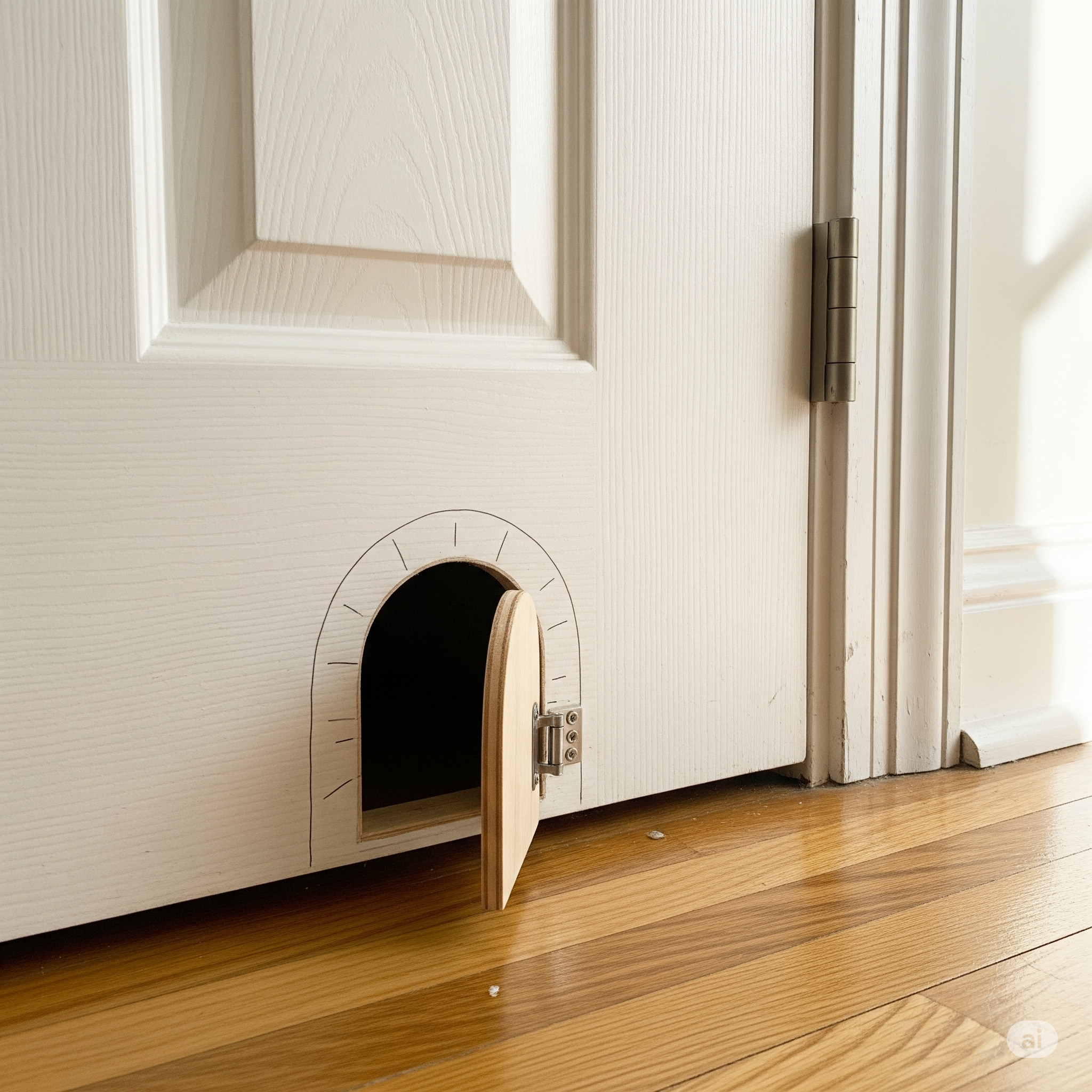 Before the rise of high-tech smart home security systems, creative homeowners were already years ahead in terms of “pet-friendly” living. Many old homes featured hand-carved mini doors—like the one in the viral photo you’ve probably seen online. These charming little entries were seamlessly embedded into the bottom panels of wooden doors or hidden behind cabinetry. They allowed cats to roam between rooms, hunt mice in the pantry, or quietly curl up in a sunny bedroom corner.