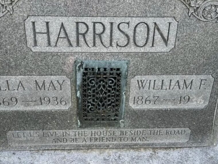 The grave marker in question features a quote from Sam Walter Foss’s poem, “The House by the Side of the Road.” The poem speaks of offering warmth and hospitality to travelers, a sentiment echoed in the lives of many families in the past who found comfort in the warmth of their homes. It seems entirely fitting that a symbol like an iron grate, which often allowed warmth to spread throughout a house, might be used as a final tribute. It’s a way of expressing that, even in death, the person remains welcoming and warm, living on in the hearts of those who remember them.