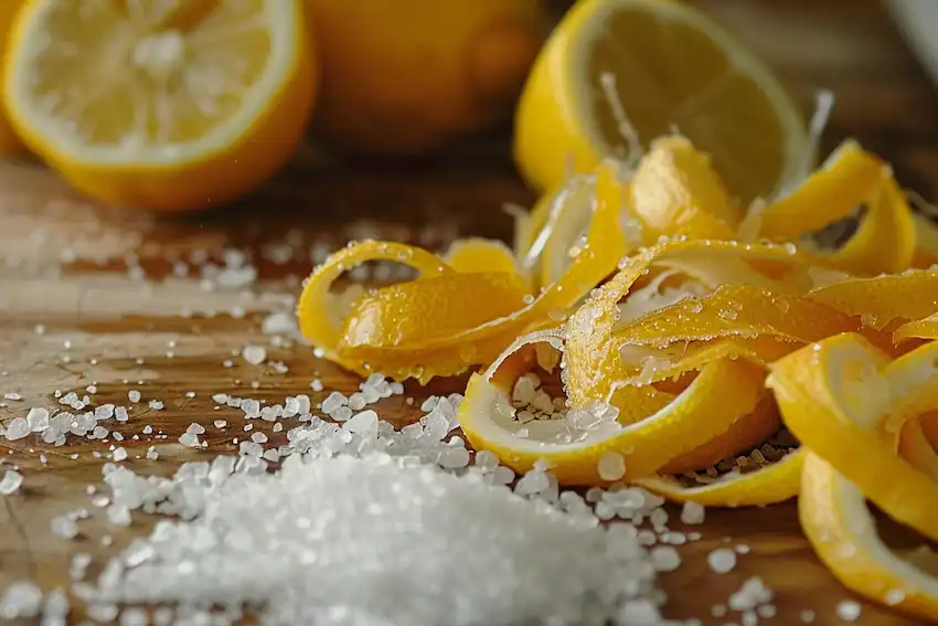 Lemon peels are rich in citric acid and possess strong antibacterial and antiseptic properties, which make them excellent for cleaning and sanitization. When combined with salt, an effective abrasive and preservative, these peels become a powerful tool against grime and microbial growth.