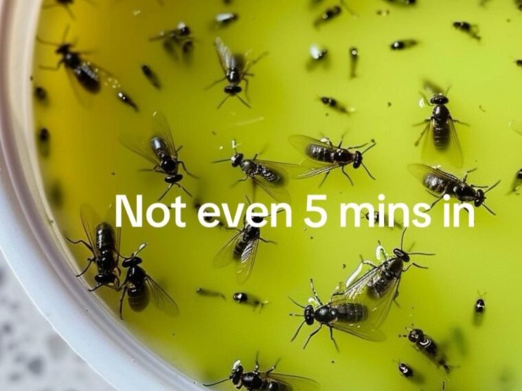 On top of the mixture, the olive oil forms a slick barrier. When you insert flies or mosquitoes into the trap, especially via the holes in the plastic wrap, the oil will smother them, making it difficult for them to fly away.